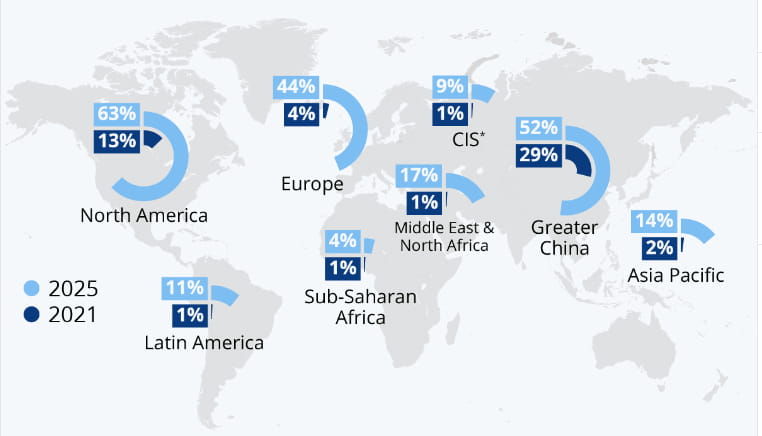 especialmente en China y en América del Norte, donde la adopción del 5G superará