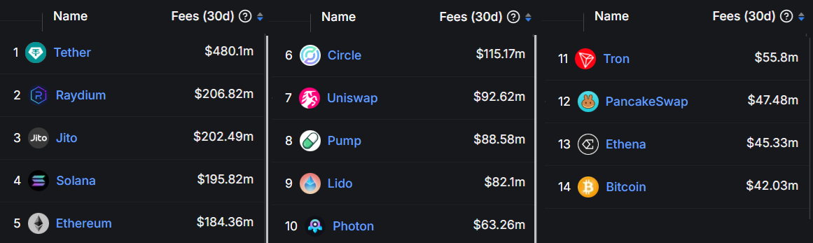 Y, en este caso, es Solana quien supera a Ethereum con respecto a los ingresos por tarifas: